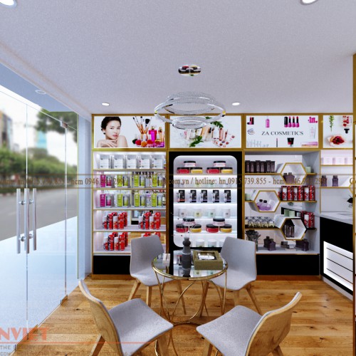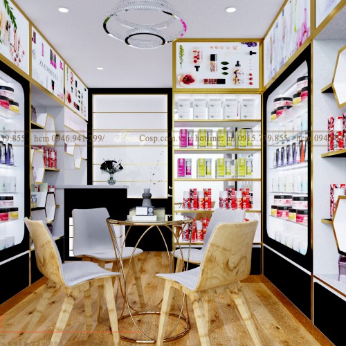 Vì vốn đầu tư không nhiều mà vẫn muốn sở hữu một shop mỹ phẩm đẹp để thu hút khách hàng, do đó chị Trang đã quyết định hợp tác cùng một đơn vị thiết kế shop uy tín và chuyên nghiệp để không phải sửa lại cửa hàng của mình. Sau khi tìm hiểu thông tin trên Internet, chị Trang đã liên hệ với Nội thất Cosp để thiết kế shop mỹ phẩm nhỏ đẹp Tracy của mình.
