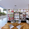 Đối với mặt hàng mỹ phẩm, đối tượng khách hàng mà shop nhắm tới là những người trẻ tuổi, do đó Cosp đã lựa chọn phong cách thiết kế shop hiện đại, trẻ trung. Tuy diện tích của hàng khá nhỏ, chỉ có 10m2, nhưng đôi bàn tay khéo léo và phân chia bố cục hợp lý, kiến trúc sư của Cosp vẫn áp dụng được gam màu đen trong thiết kế shop.