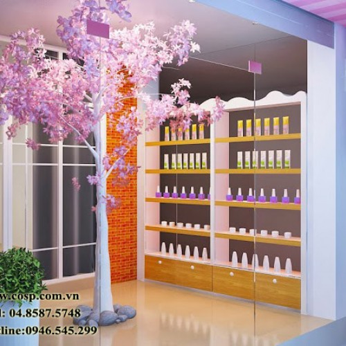 Xin chào các bạn chúng tôi là Nội Thất Cosp một đơn vị thiết kế và thi công nội thất chuyên nghiệp được thành lập cách đây 13 năm. Với kinh nghiệm từng trải chúng tôi đảm bảo mang đến cho khách hàng những công trình đẹp nhất dù cho nó có diện tích nhỏ như mẫu thiết kế cửa hàng mỹ phẩm của chị Tiên dưới đây.