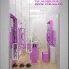Sử dụng tone màu hồng cá tính cùng màu trắng dễ thương đã thể hiện ngay phong cách thiết kế rất quyến rũ, khách hàng mục tiêu nhắm tới nữ giới chủ yếu. Ánh sáng rất ổn định từ đèn âm trần đến đèn led thanh bên trong tủ, giường như các sản phẩm đều có thể phô trương vẻ đẹp của mình trước ánh nhìn của khách hàng.