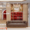 Khu vực giao dịch được đặt ở vị trí trung tâm, thuận tiện cho cả khách hàng và nhân viên. Ghế chờ được bố trí sát tường, không làm cản trở luồng di chuyển. Thiết kế hướng đến sự thoải mái nhưng vẫn đảm bảo an toàn. Đây là yếu tố đặc biệt quan trọng với mô hình kinh doanh vàng bạc.