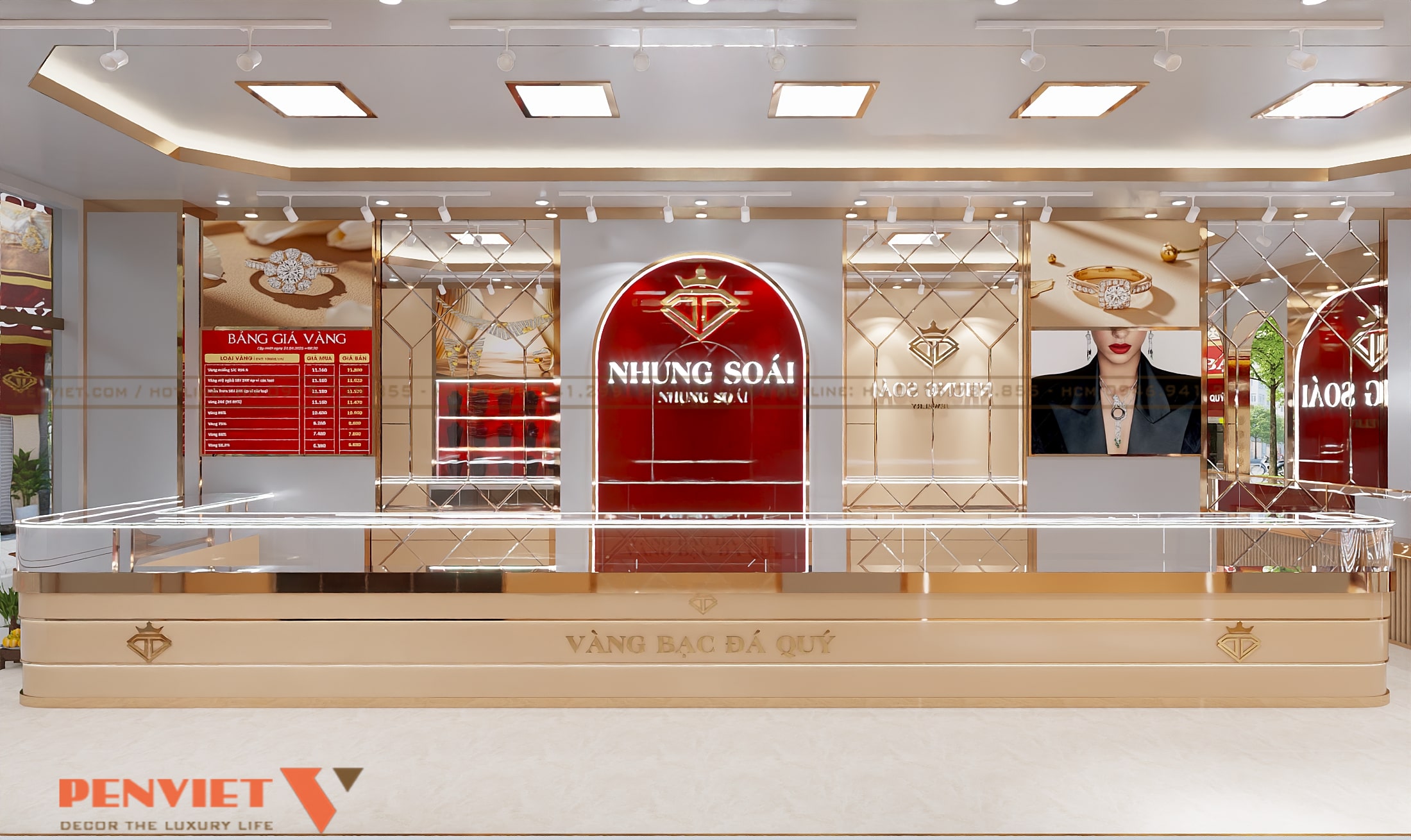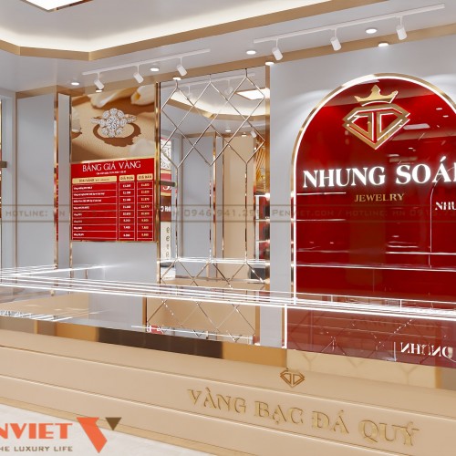 Trong ngành vàng bạc, không gian cửa hàng không chỉ là nơi giao dịch mà còn là yếu tố quyết định niềm tin của khách hàng. Với diện tích 45m2, thiết kế TIỆM VÀNG NHUNG SOÁI theo phong cách hiện đại nhằm nâng cao hình ảnh thương hiệu và trải nghiệm mua sắm. Dự án là lời giải cho bài toán vừa sang trọng, vừa tối ưu công năng trên mặt bằng phố. Đây cũng là gợi ý thực tế cho các chủ tiệm vàng đang muốn làm mới không gian kinh doanh.