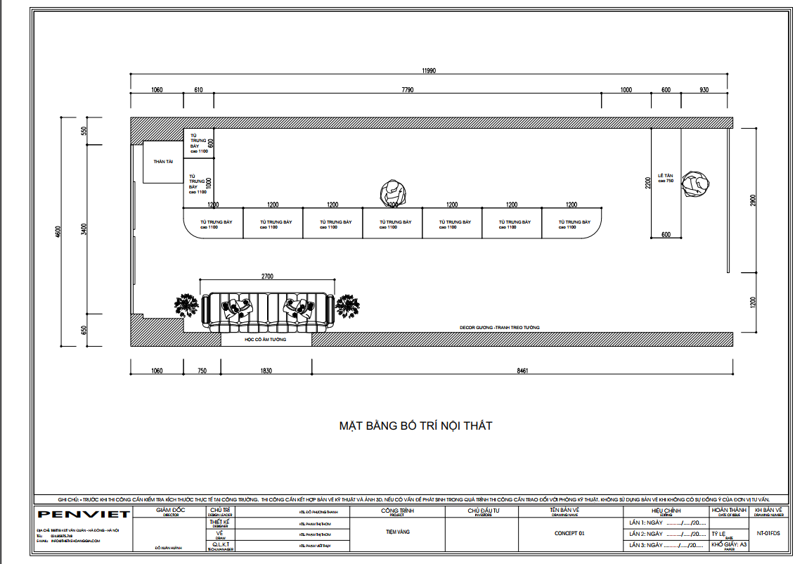 TIỆM VÀNG NHUNG SOÁI tọa lạc tại Thái Bình, do chị Cúc làm chủ đầu tư với mong muốn nâng cấp cửa hàng theo hướng chuyên nghiệp hơn. Không gian cũ được đánh giá là chưa tạo được dấu ấn thương hiệu rõ ràng. Diện tích 45m2 đòi hỏi giải pháp thiết kế hợp lý để vừa trưng bày sản phẩm, vừa tạo cảm giác an toàn. Dự án tập trung cải tạo toàn diện từ mặt tiền đến nội thất bên trong.