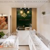 Quầy thanh toán được làm từ gỗ MDF phun sơn được đẩy về cuối tiệm, kiểu dáng đơn giản, nhưng vẫn đảm bảo được công năng sử dụng cũng như tính thẩm mỹ.
