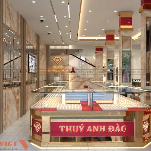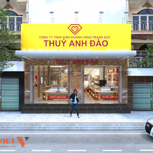 Thiết kế tiệm vàng Thúy Anh Đào nổi bật với các bố trí nội thất hiện đại, sang trọng, và tinh tế. Mọi chi tiết từ ánh sáng, bố cục đến việc sử dụng các vật liệu được chăm chút tỉ mỉ mang đến dấu ấn riêng cho chủ đầu tư. Xin mời bạn đọc cùng PenViet tham khảo nội dung bài viết dưới đây để hiểu rõ hơn về cách bố trí nội thất này.
