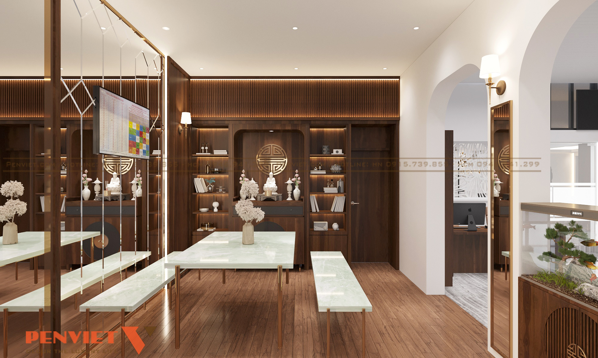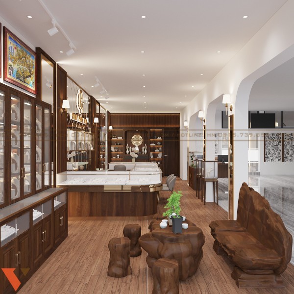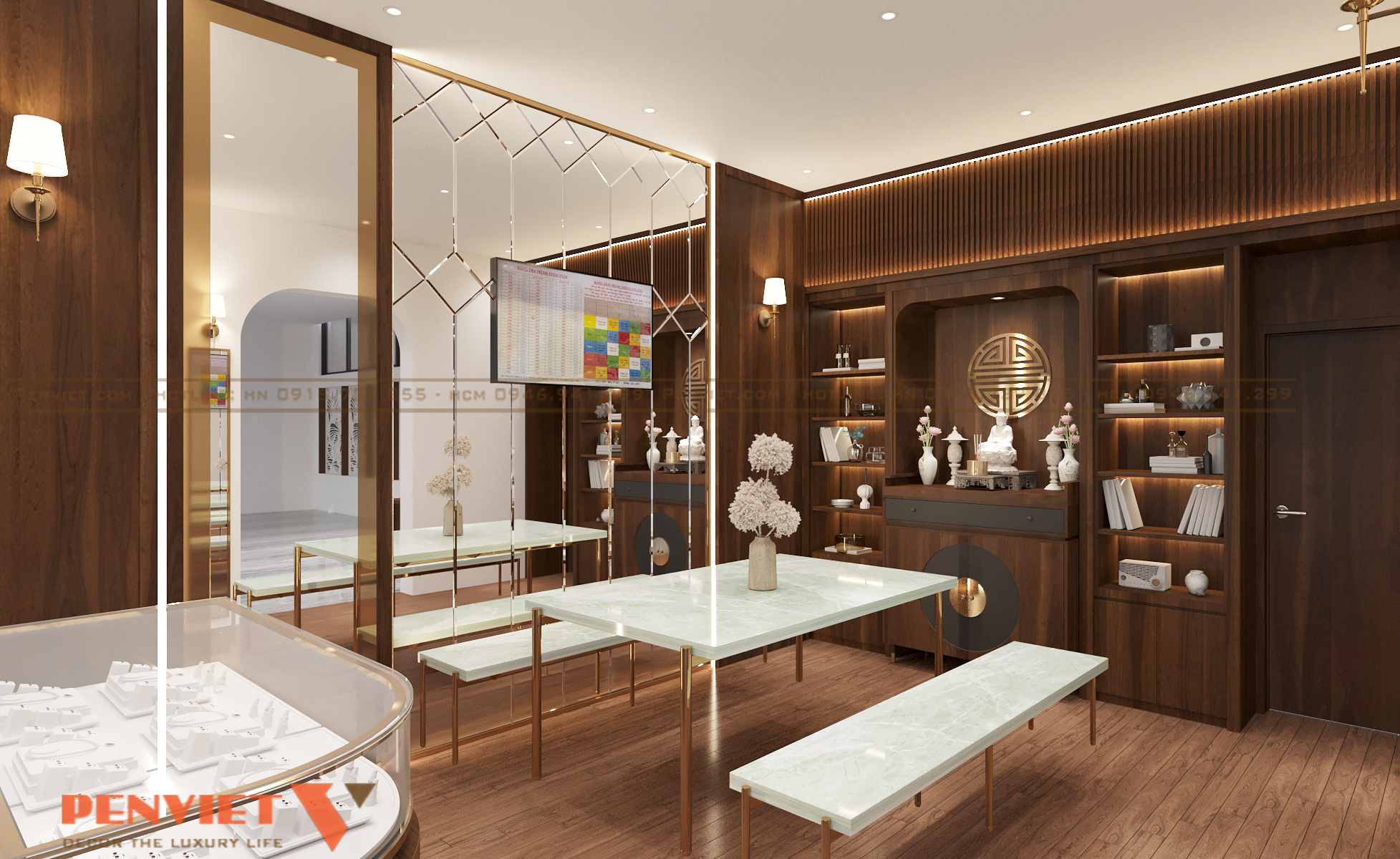 Khu vực tư vấn tách biệt giúp quá trình trao đổi về phong thủy diễn ra tập trung hơn. Điều này đặc biệt phù hợp với các sản phẩm cần tư vấn chuyên sâu. Với những chủ đầu tư muốn cải tạo cửa hàng theo hướng chuyên nghiệp, đây là điểm cộng lớn trong trải nghiệm khách hàng. Không gian tư vấn góp phần nâng cao giá trị dịch vụ chứ không chỉ đơn thuần là bán sản phẩm.