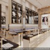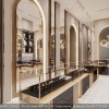 Ngoài ra, các lối đi trong cửa hàng được thiết kế rộng rãi và liền mạch, mang lại cảm giác thoáng đãng và thoải mái cho người mua. Một số khu vực có ghế ngồi bọc nhung mềm mại dành cho khách nghỉ chân hoặc chờ tư vấn, giúp tăng thời gian trải nghiệm trong cửa hàng.