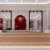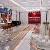 Quầy kính được thiết kế thấp, tăng khả năng tương tác giữa khách và nhân viên. Các góc bo nhẹ giúp không gian mềm mại và an toàn hơn. Từng khu vực được phân chia rõ ràng theo chức năng trưng bày và giao dịch.