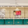Sàn nhà được ốp đá trắng vân mây, tạo cảm giác sáng sủa và rộng rãi hơn. Chúng tôi cũng sử dụng hệ thống đèn LED âm trần để tăng cường ánh sáng, làm nổi bật vẻ đẹp của các sản phẩm trang sức trưng bày.