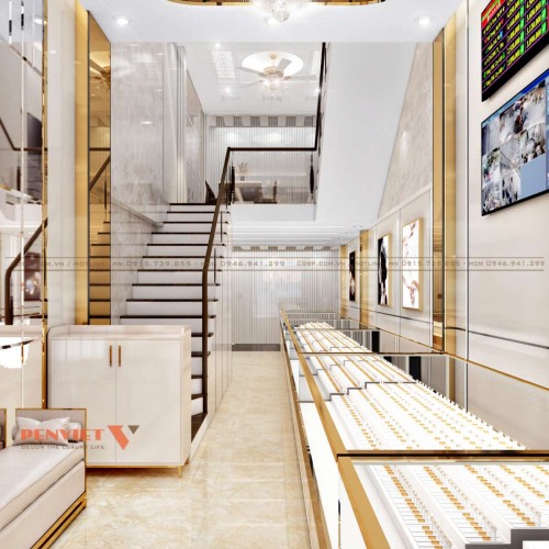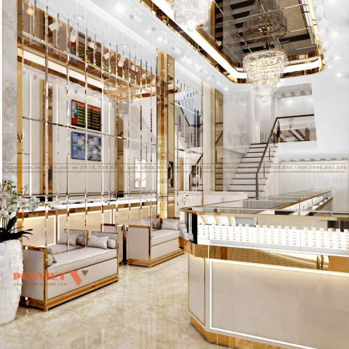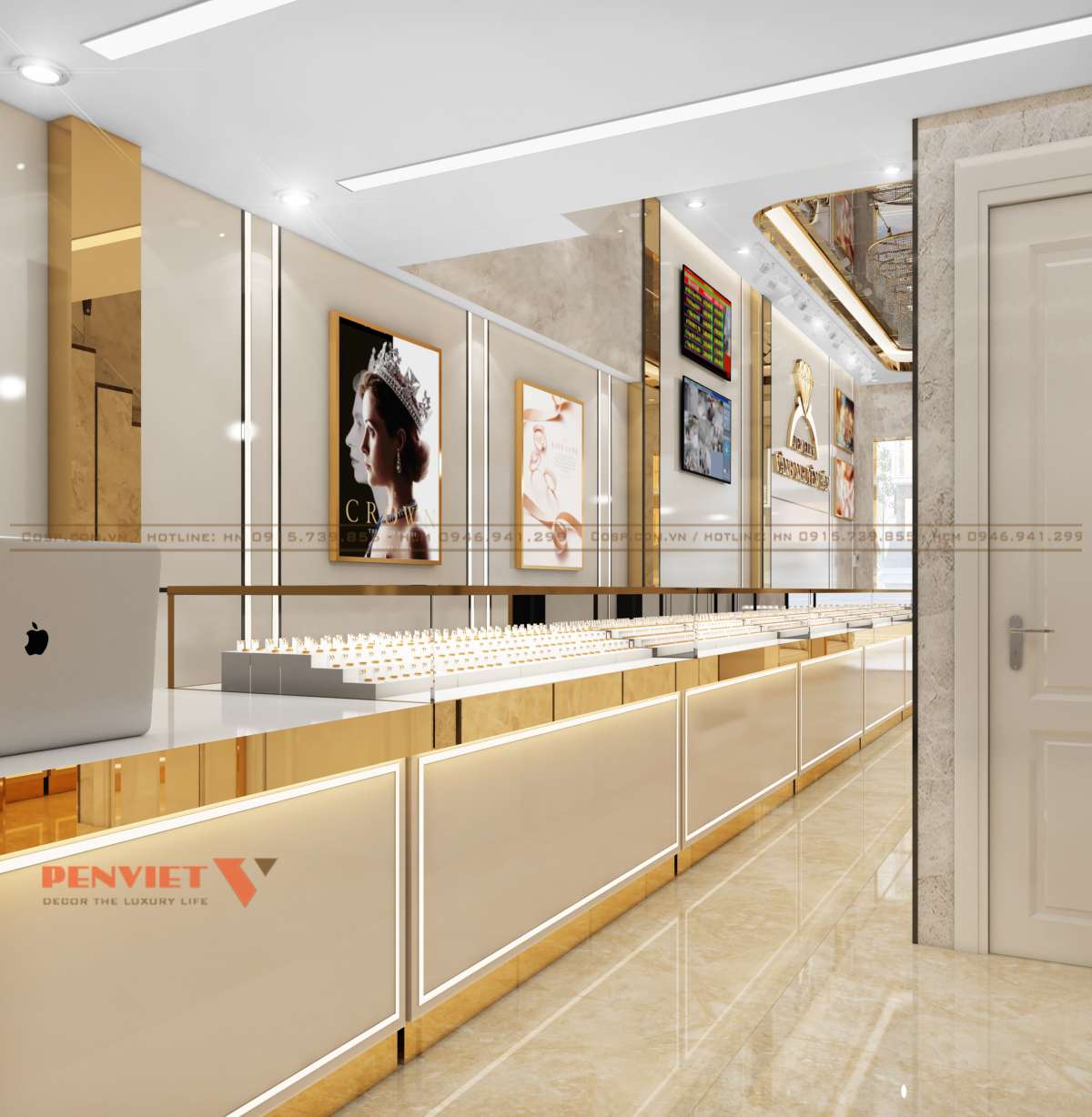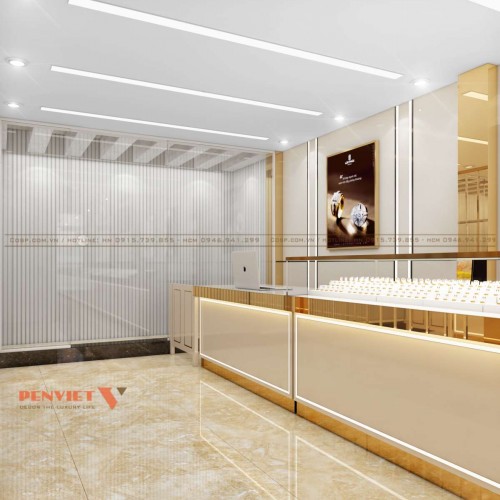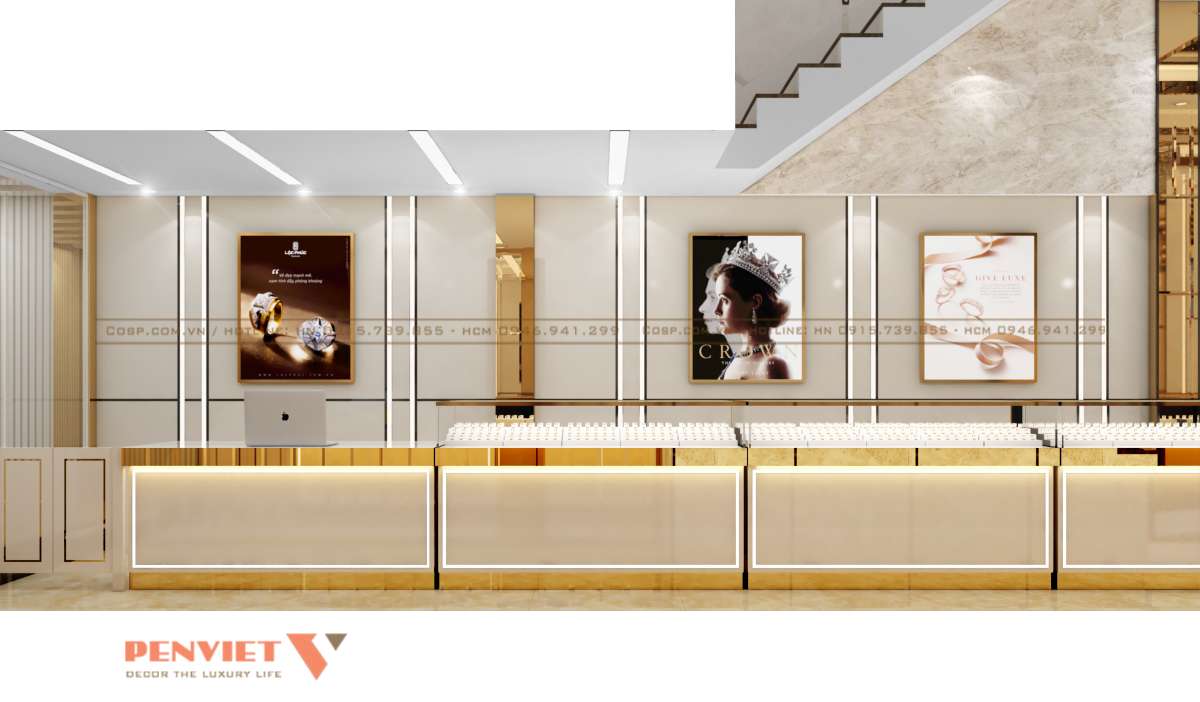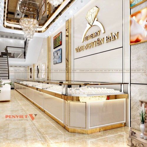 Mẫu thiết kế nội thất tiệm vàng Nguyên Bản do PenViet thực hiện không chỉ tinh tế trong cách phối hợp các yếu tố thiết kế mà còn đảm bảo hiệu quả sử dụng. PenViet cam kết mang đến cho quý khách những giải pháp thiết kế phù hợp và ấn tượng. Hãy liên hệ PenViet ngay hôm nay bạn nhé!