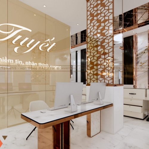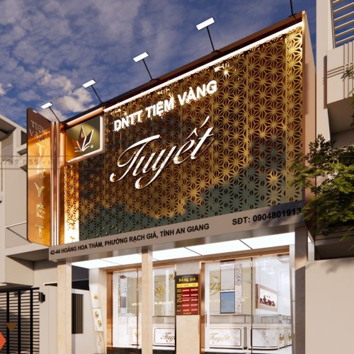 Thiết kế tiệm vàng Tuyết Kiên Giang là giải pháp cải tạo không gian hiệu quả cho mặt bằng 68m². Dự án nổi bật với mặt tiền ấn tượng, bố trí khoa học và vật liệu cao cấp. Đây là hướng đi phù hợp cho chủ đầu tư muốn nâng cấp tiệm vàng theo phong cách hiện đại, chuyên nghiệp và tối ưu kinh doanh.