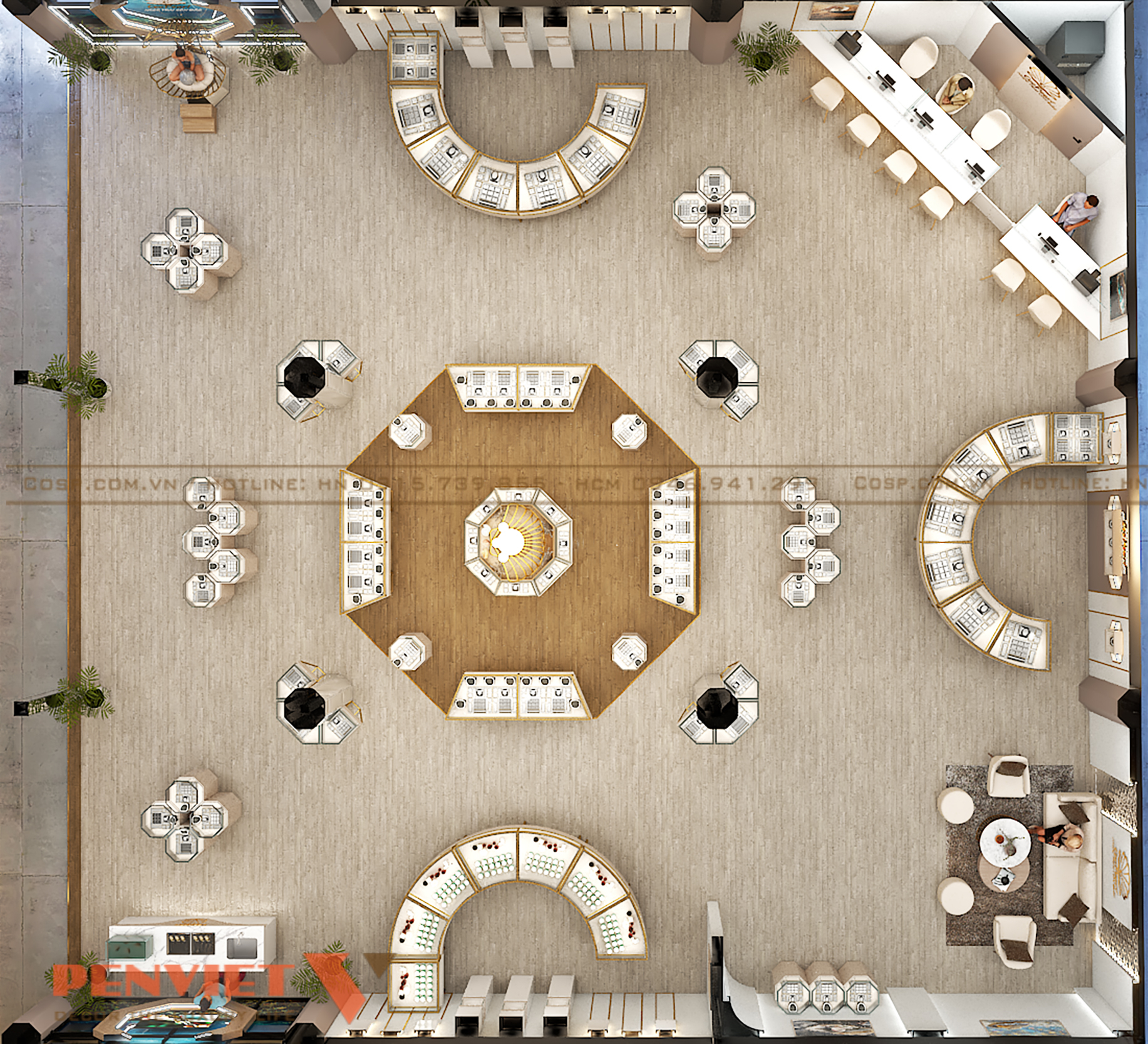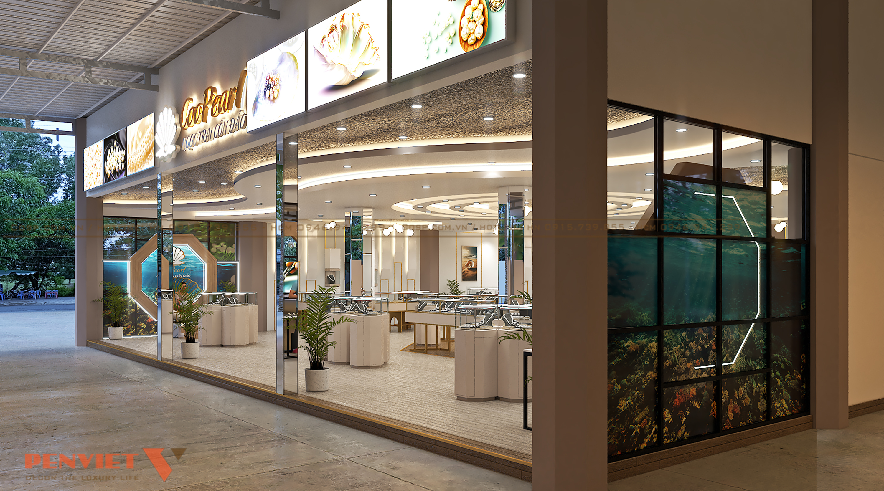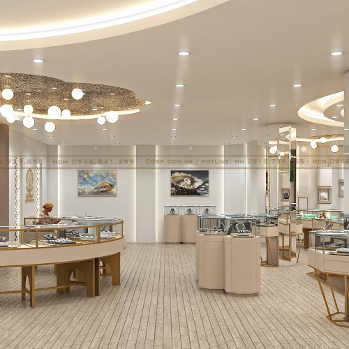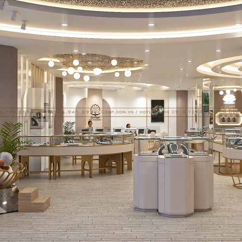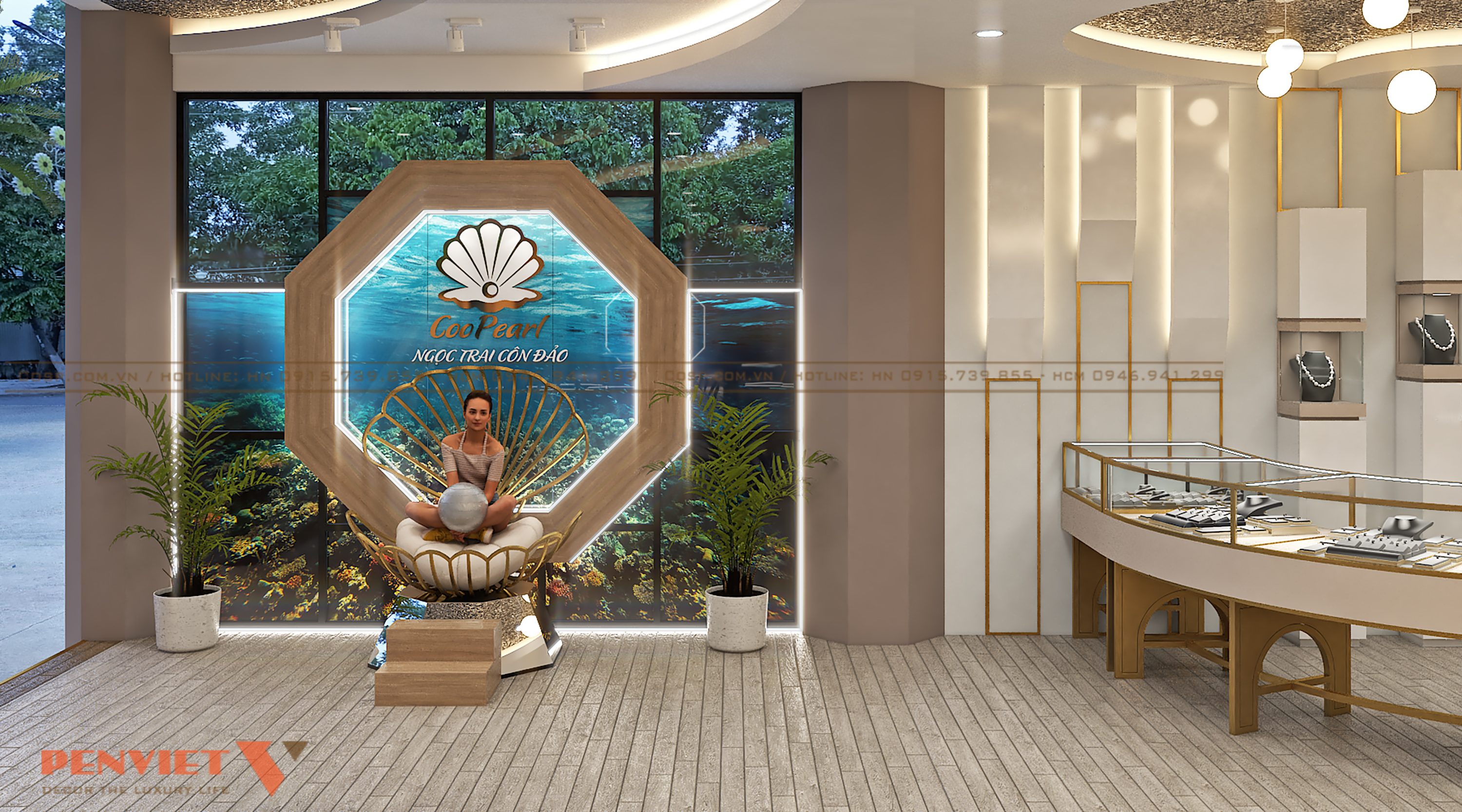 Thiết kế nội thất showroom ngọc trai COOPEARL là tác phẩm nghệ thuật đầy cảm hứng. Từ quầy tiếp tân gây ấn tượng mạnh, khu vực trưng bày trung tâm sáng tạo, cho đến không gian nghỉ ngơi thoải mái được bố trí tỉ mỉ để mang lại trải nghiệm mua sắm đẳng cấp. Nếu quý khách muốn sở hữu không gian kinh doanh đẳng cấp như vậy, hãy liên hệ PenViet ngay hôm nay để được tư vấn chu đáo hơn.