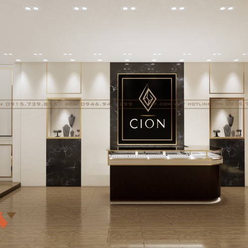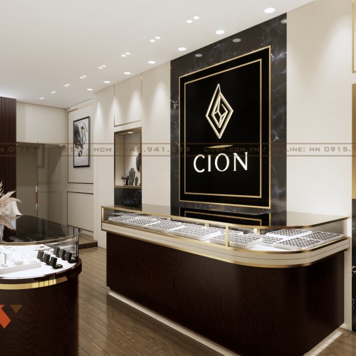 Thiết kế tiệm trang sức CION với diện tích 30m2 và gam màu đen chủ đạo đã tạo nên một không gian kinh doanh sang trọng, hiện đại. Nếu bạn có nhu cầu thiết kế nội thất, hãy liên hệ PenViet ngay hôm nay.