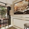 Phía cuối tiệm, một khu vực nhỏ được bố trí dành riêng để tư vấn khách hàng. Một chiếc bàn nhỏ cùng ghế sofa dài êm ái giúp khách hàng thoải mái khi chờ hỗ trợ.