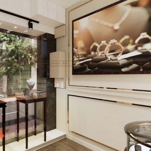 Vách kính ốp thủy giúp không gian nới rộng hơn cho tiệm trang sức.
