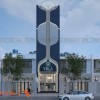 Ngay từ cái nhìn đầu tiên, mặt tiền tiệm trang sức VIKA gây ấn tượng mạnh mẽ với thiết kế hiện đại và đẳng cấp. Sự kết hợp giữa màu xanh đậm chủ đạo với các đường viền kim loại ánh bạc không chỉ tạo cảm giác sang trọng mà còn thể hiện sự tinh tế trong từng chi tiết. Điểm nhấn nổi bật nhất chính là biểu tượng viên kim cương lớn đặt phía trên đỉnh tòa nhà, đại diện cho sự lấp lánh, giá trị và chất lượng của những sản phẩm trang sức bên trong.