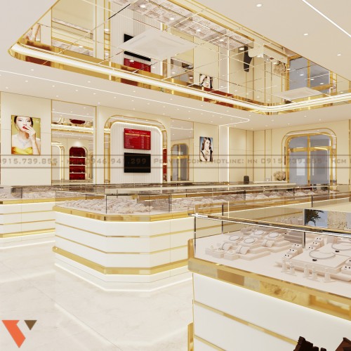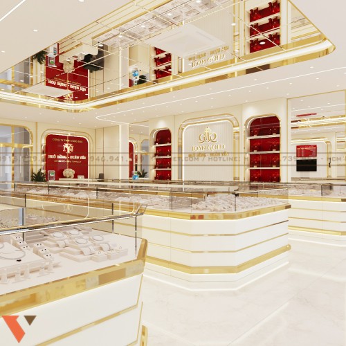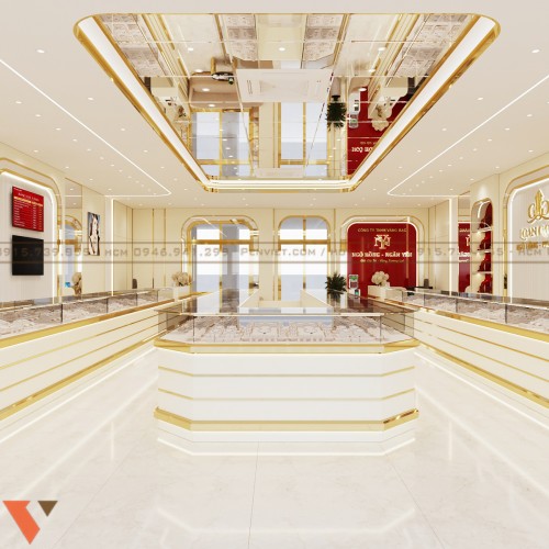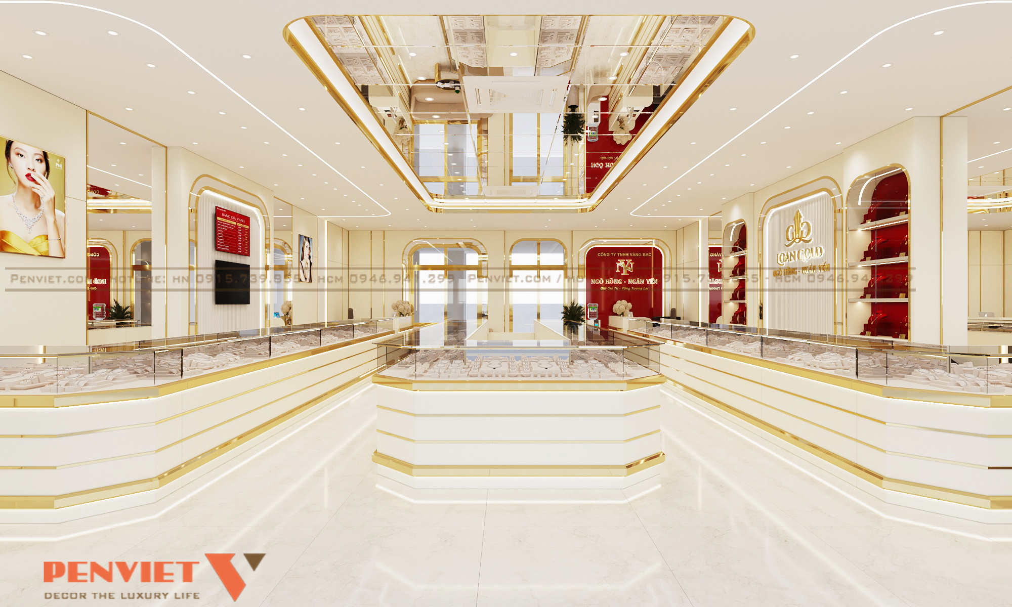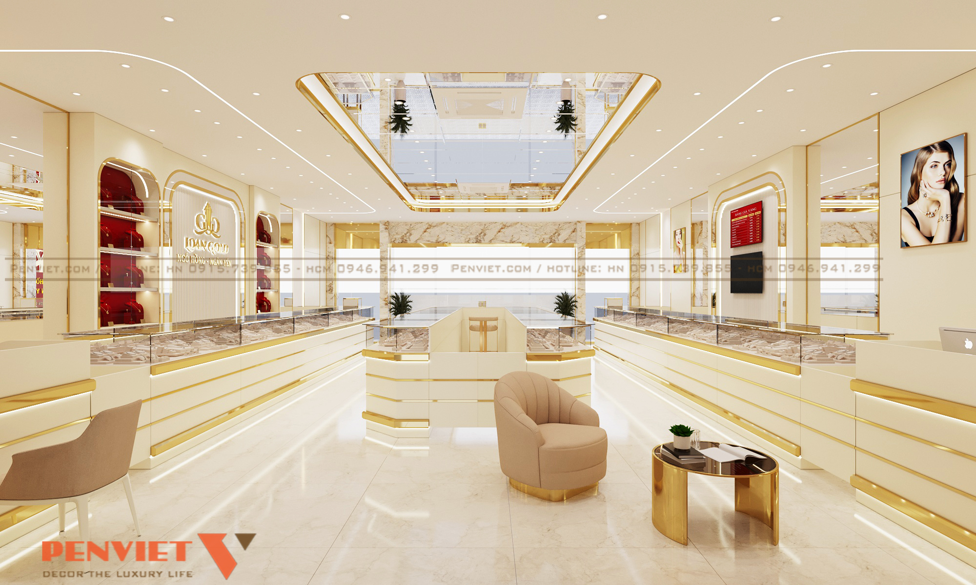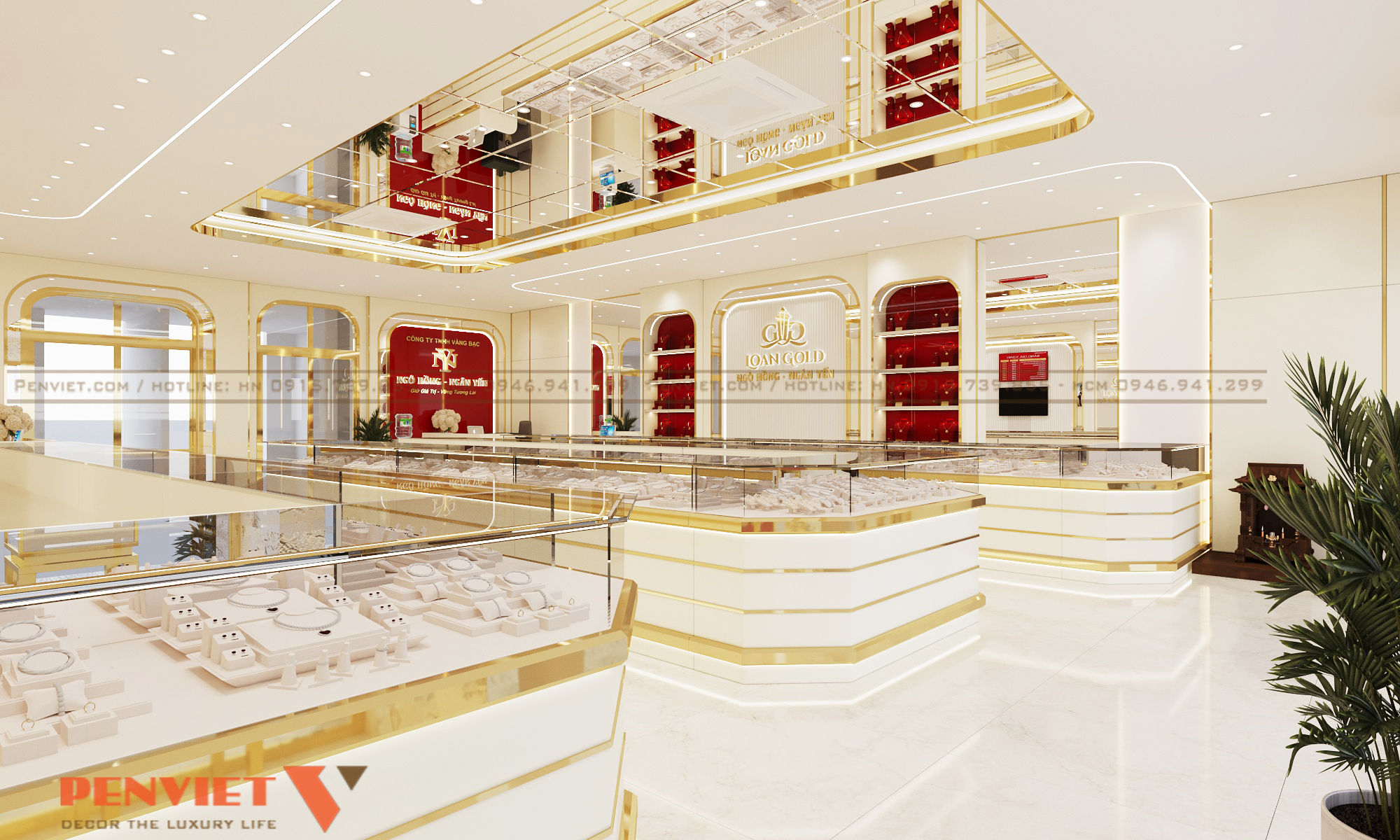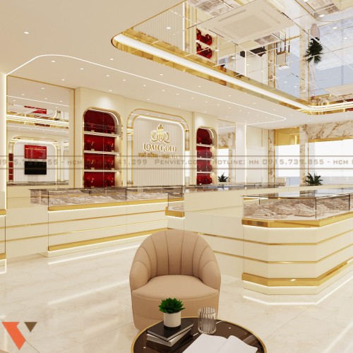 Không gian sang trọng tạo ấn tượng ngay khi bước vào. Thiết kế đồng bộ giúp nâng tầm thương hiệu. Đây là yếu tố quan trọng trong ngành kinh doanh vàng bạc.