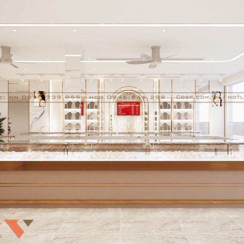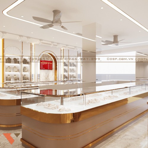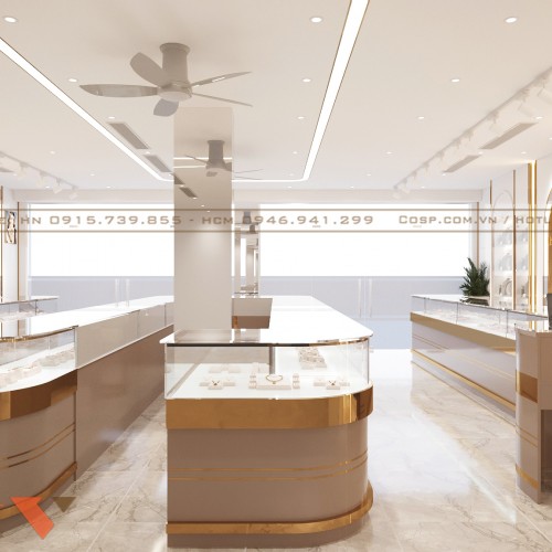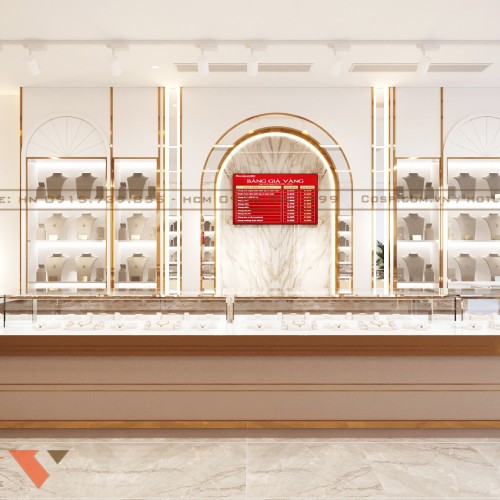 Thông qua thiết kế này, tiệm vàng không chỉ là nơi giao dịch mua bán trang sức mà còn trở thành showroom trưng bày sang trọng góp phần tạo dựng niềm tin, nâng cao hình ảnh thương hiệu và thu hút khách hàng.