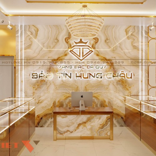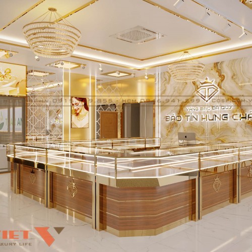 Thiết kế tiệm vàng BẢO TÍN HƯNG CHÂU là sự tổng hòa giữa nghệ thuật, công năng và tính thẩm mỹ đỉnh cao. Từ cách sắp xếp tủ trưng bày, chất liệu sử dụng, cách bố trí ánh sáng cho đến từng chi tiết như logo, tranh trang trí, tất cả đều góp phần tạo nên một không gian bán hàng đẳng cấp và đáng tin cậy. Quý khách hãy liên hệ PenViet ngay hôm nay để được kiến trúc sư tư vấn thêm về ý tưởng bố trí không gian.