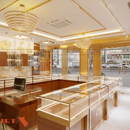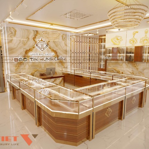 Trong lĩnh vực kinh doanh vàng bạc đá quý, không gian trưng bày là nơi giới thiệu sản phẩm và còn để khẳng định vị thế thương hiệu, quyết định đến trải nghiệm mua sắm khách hàng. Với thiết kế tiệm vàng Bảo Tín Hưng Châu tại Nghệ An đẳng cấp mang đến không gian trưng bày lộng lẫy nhưng chuyên nghiệp của thương hiệu vàng bạc hàng đầu. Cùng PenViet tham khảo ý tưởng thiết kế không gian cửa hàng này dưới đây.
