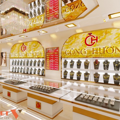 Không gian được bố trí đảm bảo luồng di chuyển thuận tiện, giúp khách hàng dễ dàng tham quan và lựa chọn sản phẩm. Độ cao của tủ kính, độ sáng của đèn, khoảng cách giữa các quầy đều được tính toán khoa học.