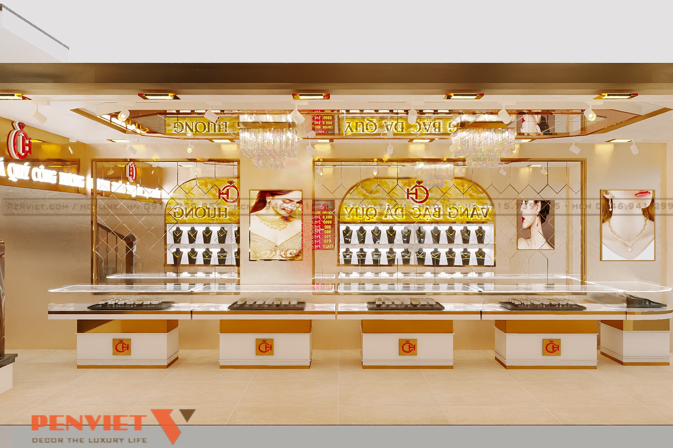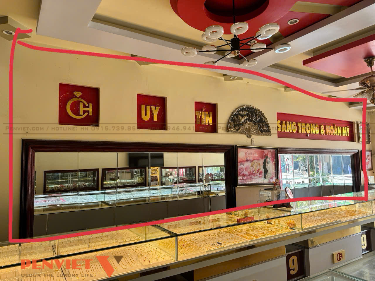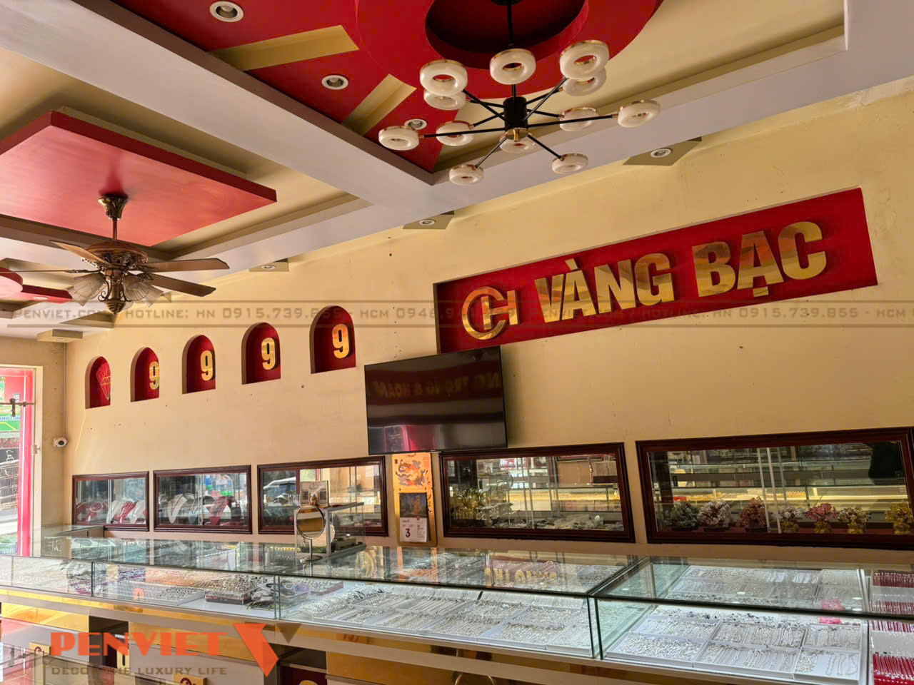 Đối với lĩnh vực kinh doanh trang sức vàng bạc, không gian trưng bày luôn đóng vai trò quan trọng trong việc định hình giá trị thương hiệu và thu hút khách hàng. Dự án thiết kế tiệm vàng Chị Hương tại Lào Cai có diện tích 40m2 nhưng đáp ứng đủ công năng. Đội ngũ thiết kế PenViet đã tạo nên một không gian hiện đại, chuyên nghiệp, tinh tế, giúp tối ưu trải nghiệm mua sắm cũng như tôn vinh vẻ đẹp từng sản phẩm.