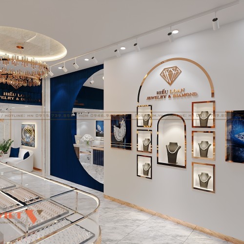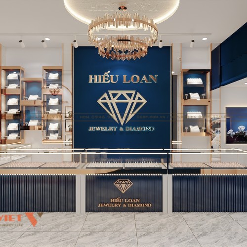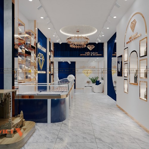 Tiệm vàng Hiếu Loan sở hữu thiết kế ấn tượng với tông màu xanh chủ đạo thu hút ánh nhìn. Đây là phương án thiết kế tiệm vàng mà chủ đầu tư hài lòng, tạo được dấu ấn riêng cho thương hiệu. Hãy cùng PenViet điểm qua nét đặc trưng của mẫu trang trí không gian này dưới đây.