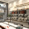 Bước vào bên trong, khách hàng lập tức bị cuốn hút bởi hệ thống quầy tủ trưng bày giữa nhà. Đây là điểm mấu chốt trong thiết kế tiệm vàng, vừa đảm bảo trưng bày đa dạng sản phẩm vừa giữ được lối đi thoải mái.