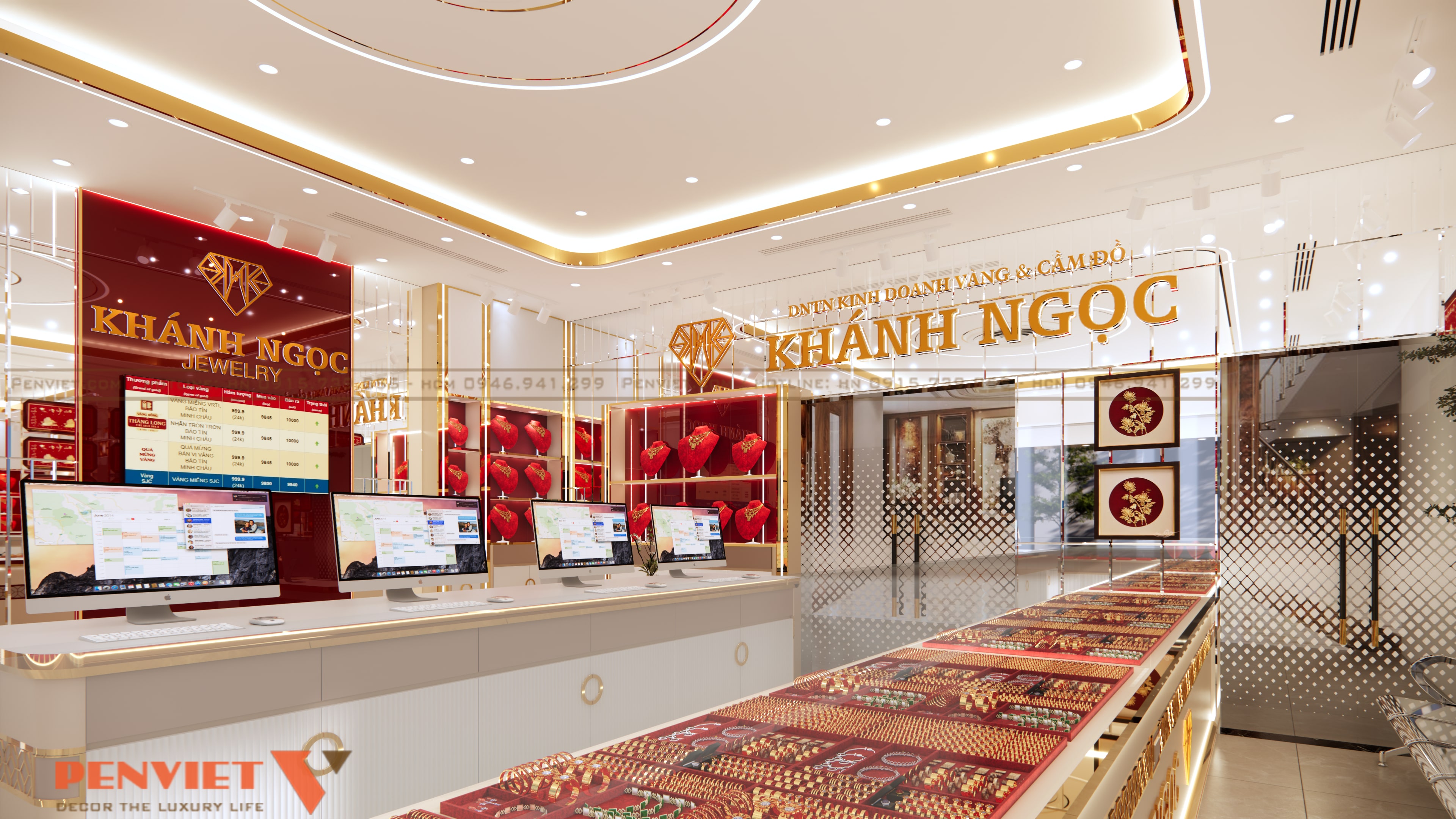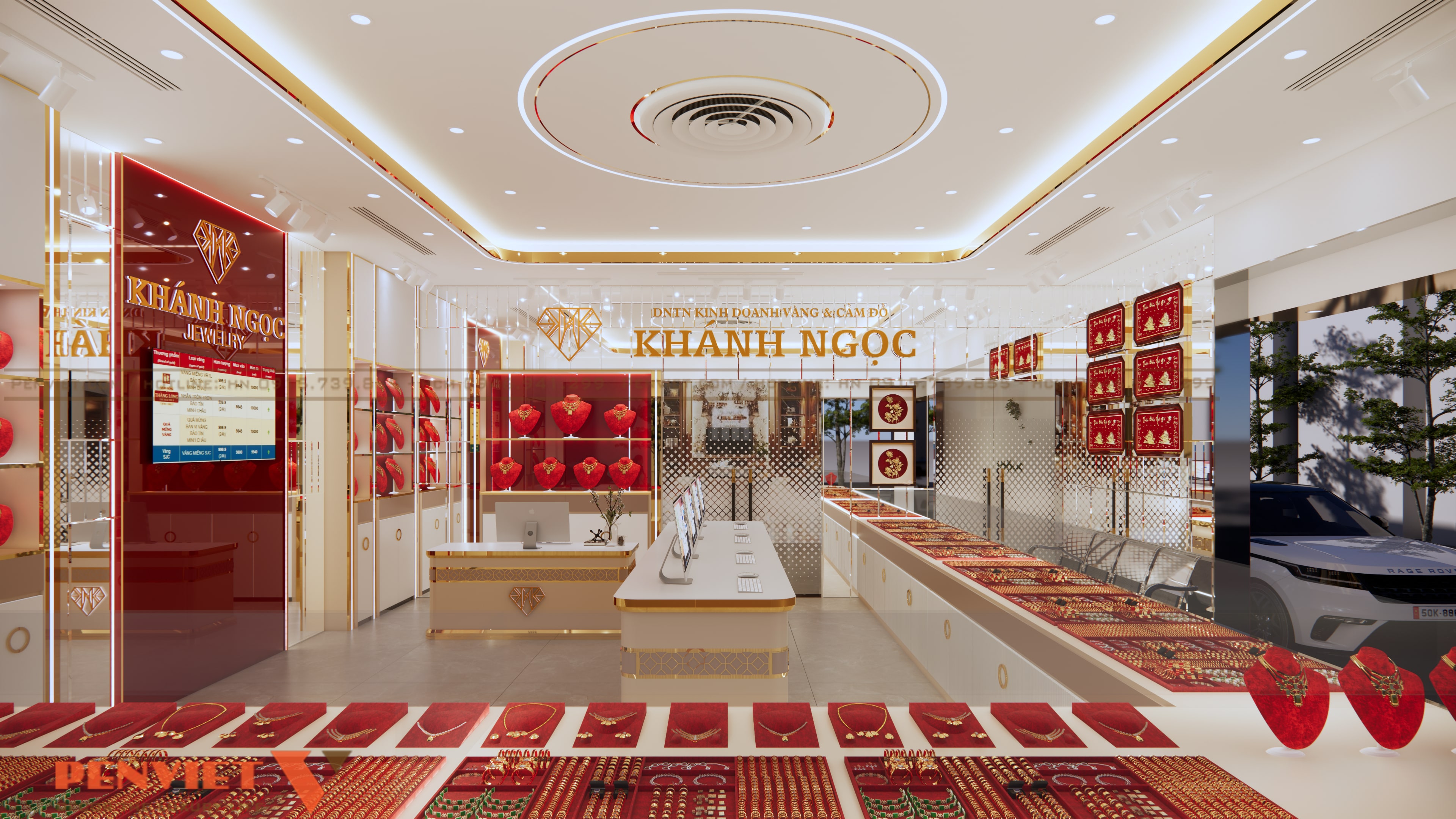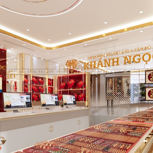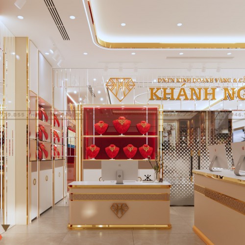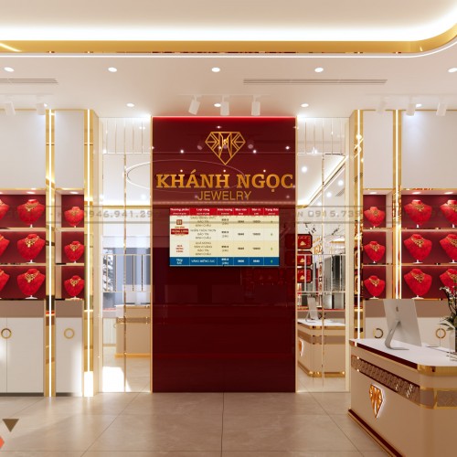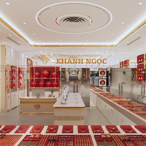 Dự án thiết kế tiệm vàng Khánh Ngọc được thực hiện tại Thủ Đức, HCM với diện tích 55m². Mục tiêu thiết kế là mang đến một không gian hiện đại, sang trọng, thể hiện đẳng cấp của thương hiệu nhưng vẫn tạo cảm giác gần gũi cho khách hàng khi bước vào. Với đặc thù là cửa hàng kinh doanh vàng bạc, đội ngũ kiến trúc sư tập trung vào yếu tố ánh sáng, màu sắc và cách bố trí tủ trưng bày để tối ưu công năng và thẩm mỹ.