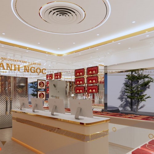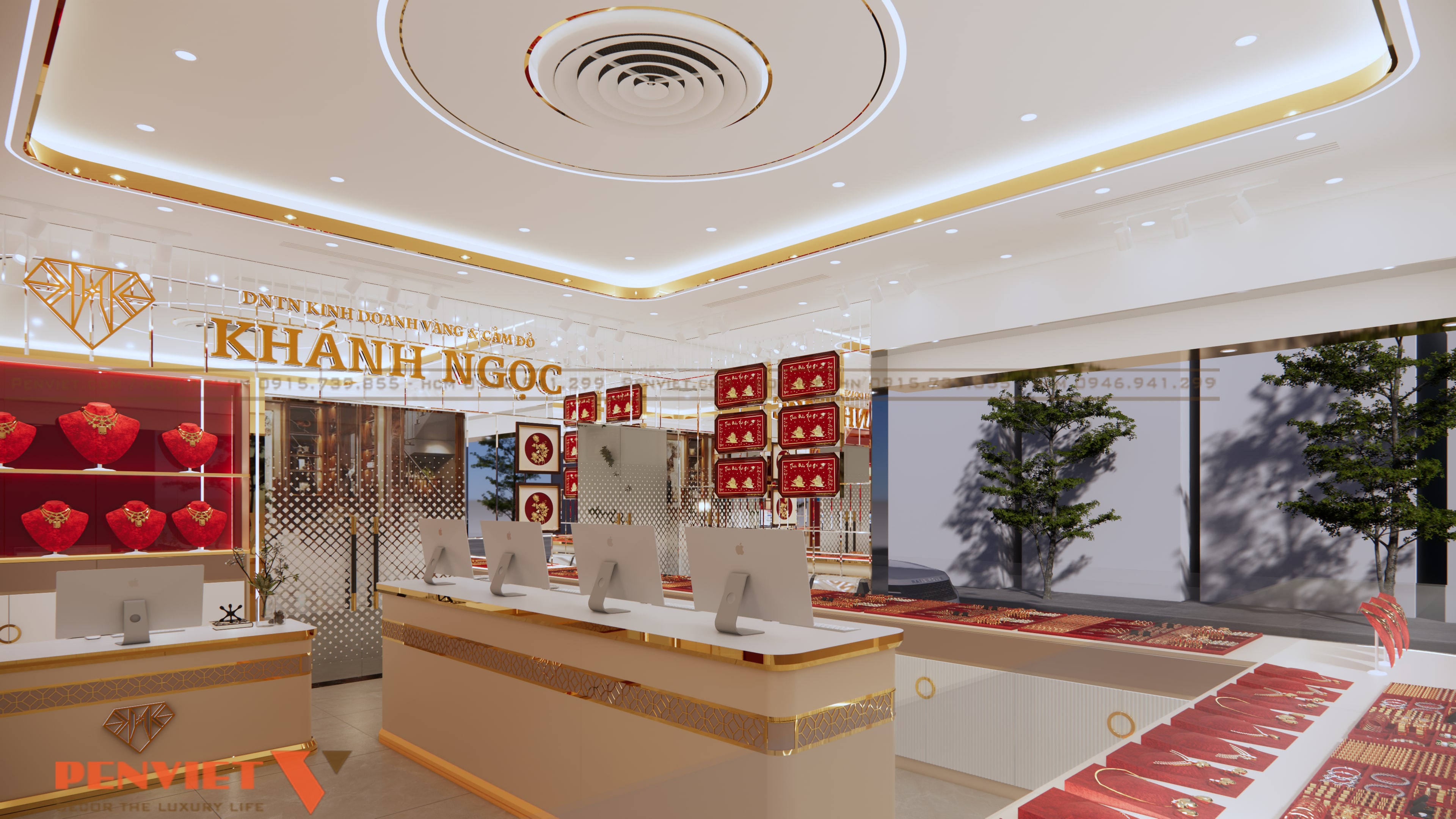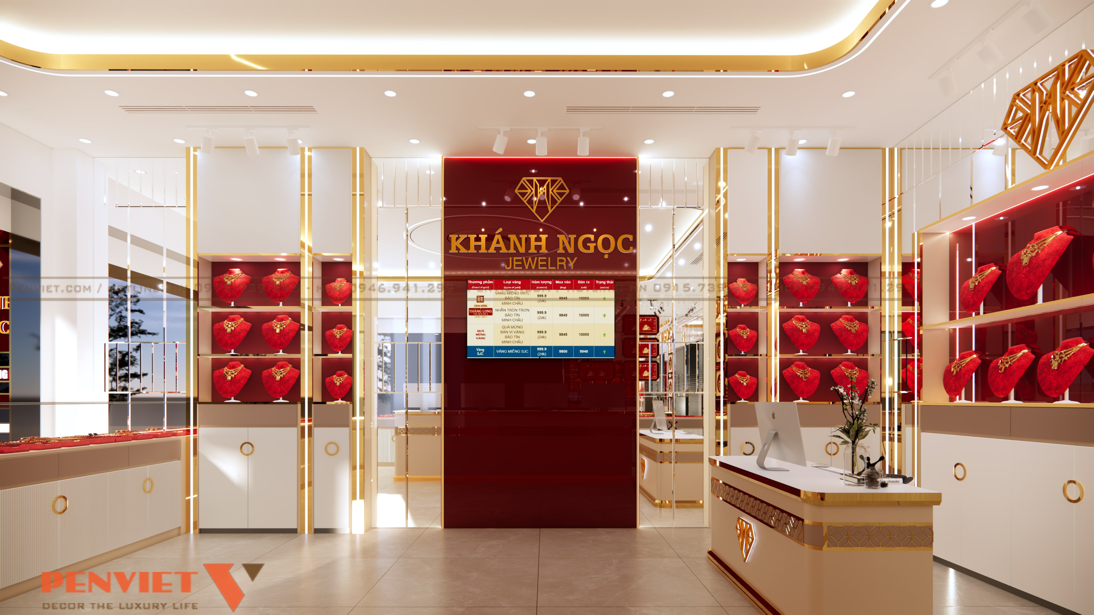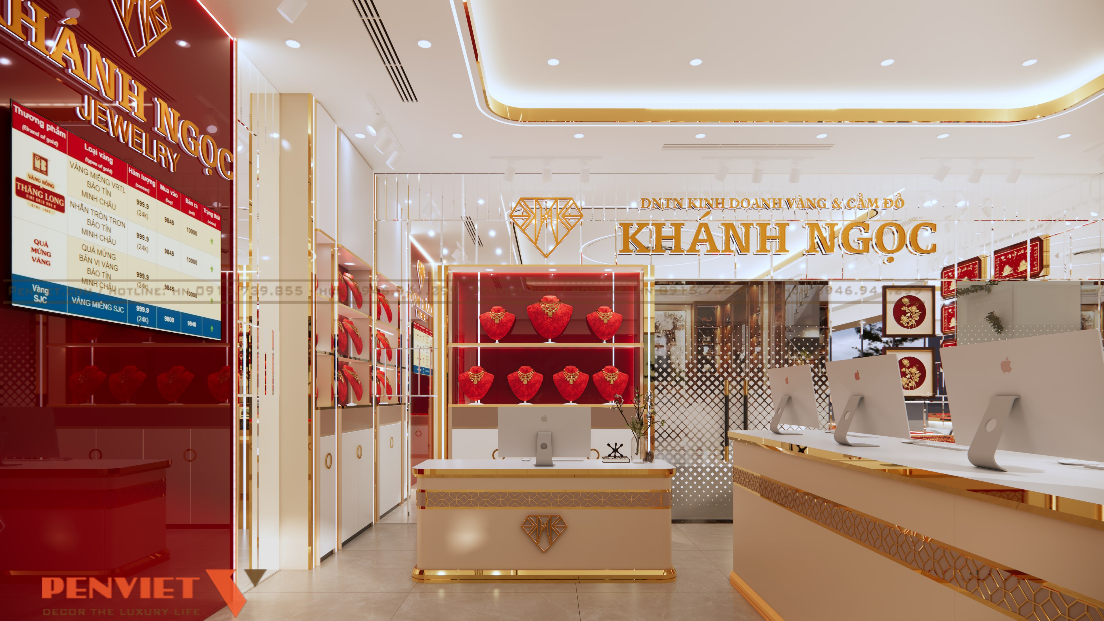 Dự án thiết kế tiệm vàng Khánh Ngọc được thực hiện tại Thủ Đức, HCM với diện tích 55m². Mục tiêu thiết kế là mang đến một không gian hiện đại, sang trọng, thể hiện đẳng cấp của thương hiệu nhưng vẫn tạo cảm giác gần gũi cho khách hàng khi bước vào. Với đặc thù là cửa hàng kinh doanh vàng bạc, đội ngũ kiến trúc sư tập trung vào yếu tố ánh sáng, màu sắc và cách bố trí tủ trưng bày để tối ưu công năng và thẩm mỹ.