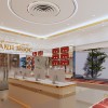 Mặc dù diện tích chỉ 55m², tiệm vàng Khánh Ngọc vẫn tạo được cảm giác rộng nhờ cách bố trí hợp lý. Các tủ trưng bày áp sát tường, nhường phần giữa cho lối đi rộng rãi. Bàn giao dịch được đặt ở vị trí trung tâm, thuận tiện cho việc quan sát toàn bộ không gian. Nhân viên có thể dễ dàng di chuyển và phục vụ khách hàng mà không gây cản trở.