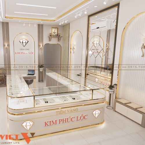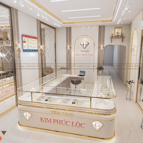 Thiết kế tiệm vàng Kim Phúc Lộc không chỉ đáp ứng yêu cầu thẩm mỹ mà còn thể hiện sự chuyên nghiệp trong kinh doanh. Không gian nhỏ nhưng được tổ chức khoa học, giúp tối ưu mọi công năng sử dụng.