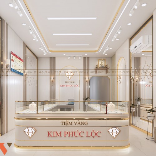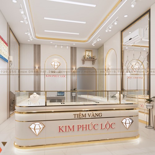 Dự án thiết kế tiệm vàng Kim Phúc Lộc ứng dụng phong cách hiện đại trong không gian nhỏ. Cách xử lý ánh sáng, màu sắc và vật liệu đã mang đến một không gian gọn gàng, sang trọng và mang đậm dấu ấn thương hiệu. Đây là mô hình phù hợp cho các tiệm vàng quy mô nhỏ cần cải tạo không gian để đạt hiệu quả thẩm mỹ và kinh doanh cao hơn.