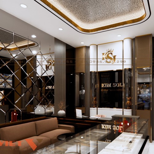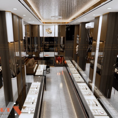 Thiết kế tiệm vàng KIM SOL theo phong cách hiện đại pha lẫn cổ điển Á Đông. Toàn bộ mặt tiền và nội thất được chăm chút kỹ lưỡng, toát lên vẻ đẹp đẳng cấp, đồng thời giúp nâng tầm giá trị của các trang sức trưng bày.