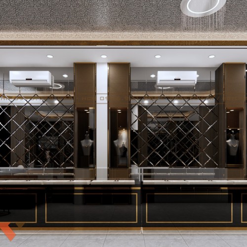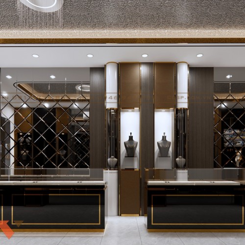 Không gian trưng bày và tiếp khách đóng vai trò quan trọng đối với lĩnh vực kinh doanh trang sức nhằm tạo ấn tượng khách hàng và truyền tải giá trị thương hiệu. Thiết kế tiệm vàng KIM SOL có phong cách nội thất cao cấp, đường nét tinh tế, màu sắc hài hòa đã khẳng định vị thế là tiệm vàng có không gian đẹp bậc nhất tại An Giang.