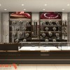 Thiết kế tiệm vàng không chỉ chú trọng thẩm mỹ mà còn hướng đến công năng sử dụng và trải nghiệm khách hàng. Bố trí quầy và tủ gọn gàng, chừa lối đi thông thoáng, giúp khách hàng dễ dàng di chuyển và quan sát. Nhân viên có vị trí đứng sau quầy thuận tiện cho việc giao tiếp và giới thiệu sản phẩm, đảm bảo an toàn trong quản lý. Các tủ kính cường lực chắc chắn, hệ ngăn kéo khóa an toàn, đảm bảo bảo vệ tài sản tối ưu.
