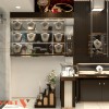 Phần dưới tủ là hệ ngăn kéo và tủ kín, dùng để cất giữ sản phẩm dự trữ hoặc vật dụng quản lý. Thiết kế đồng bộ với quầy trung tâm, đảm bảo sự hài hòa tổng thể. Các vách tủ có kết hợp gương phản chiếu, tạo cảm giác không gian rộng rãi, đồng thời làm sản phẩm thêm lung linh, sang trọng. Hệ thống tủ trưng bày này mang đến sự tiện lợi trong việc bố trí sản phẩm theo từng dòng, từng phân khúc, giúp khách hàng dễ dàng lựa chọn.