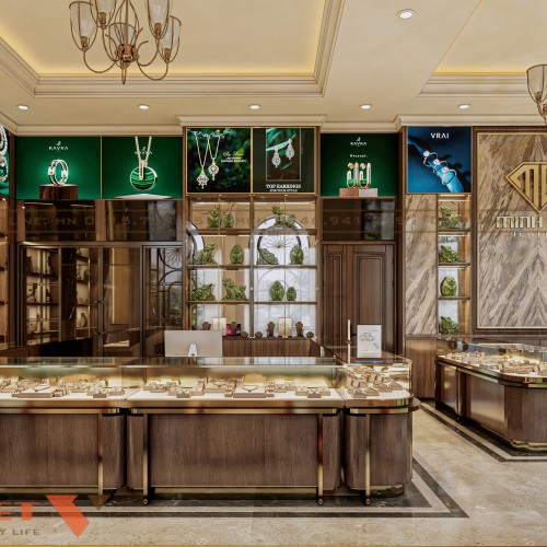 Thiết kế tiệm vàng Minh Dậu của anh Cảnh tại Thanh Hóa trở thành biểu tượng của sự tinh tế và đẳng cấp trong bố trí nội thất. Không gian này vừa giúp nâng tầm giá trị sản phẩm trang sức quý giá mà còn khẳng định vị thế thương hiệu trên thị trường. Hãy liên hệ PenViet để sở hữu cho mình phương án thiết kế nội thất ấn tượng như trên bạn nhé!