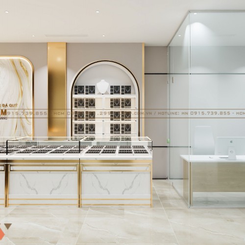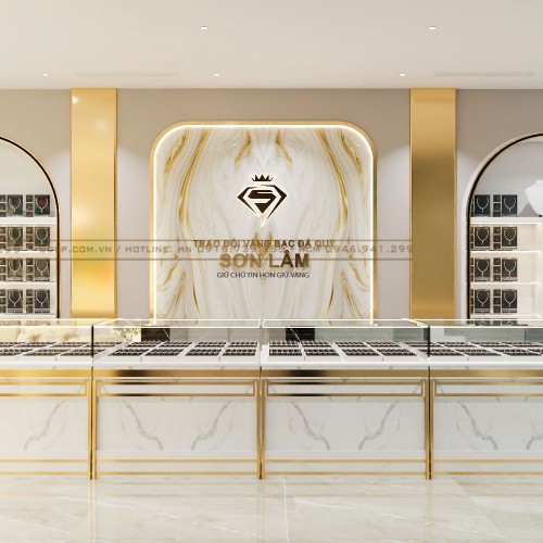 Thiết kế nội thất tiệm vàng Sơn Lâm thể hiện sự sang trọng, đẳng cấp của thương hiệu trang sức kinh doanh. Tuy với diện tích nhỏ nhưng cách bố trí khoa học sẽ giúp cửa hàng thêm rộng rãi, đáp ứng đủ nhu cầu công năng. Hãy liên hệ PenViet ngay hôm nay để sở hữu không gian kinh doanh ấn tượng cho riêng mình.