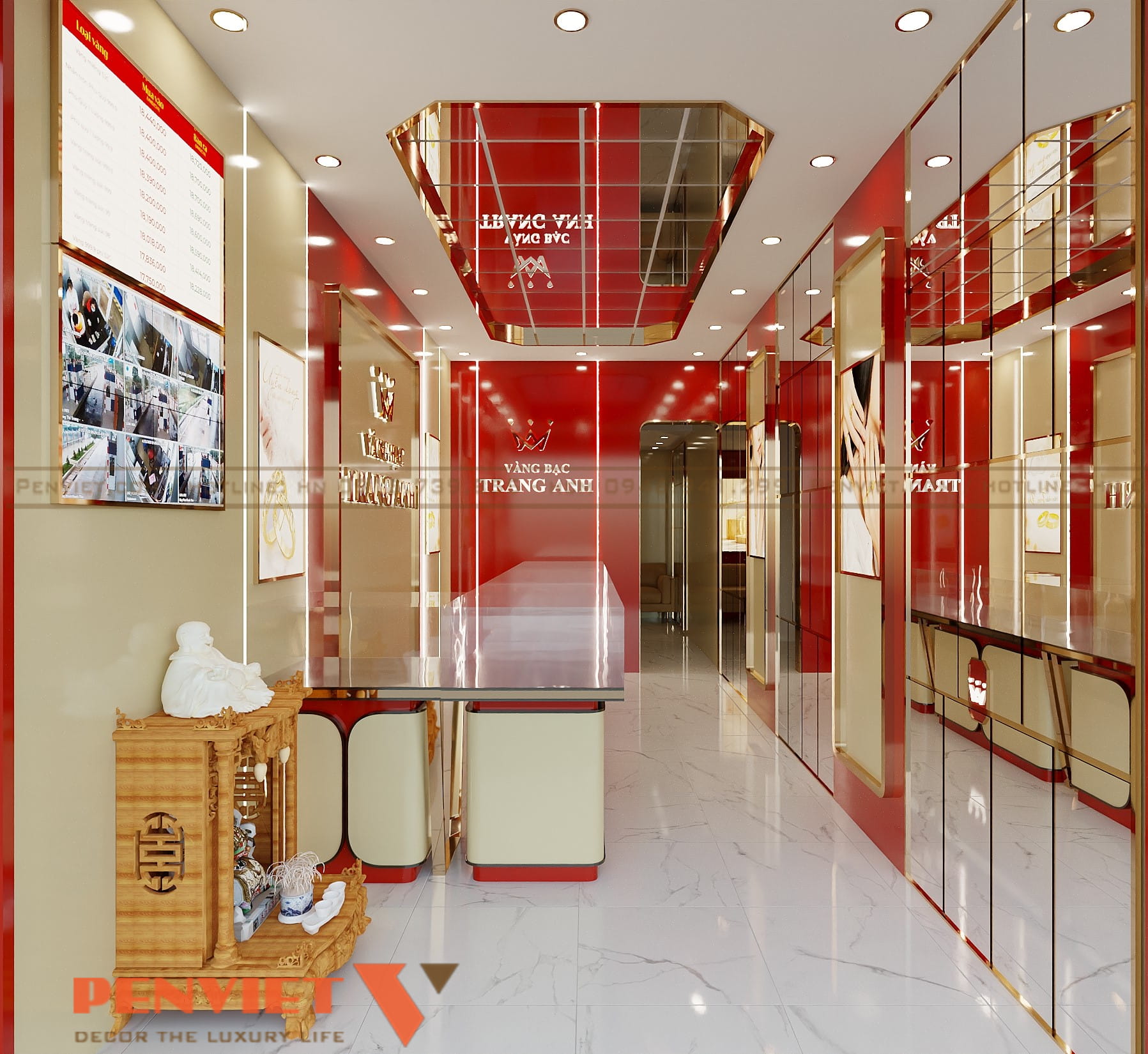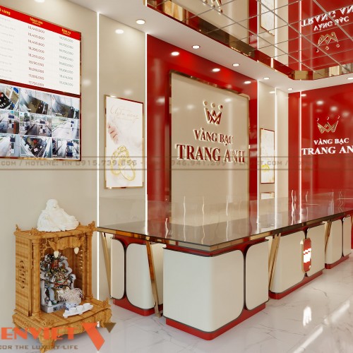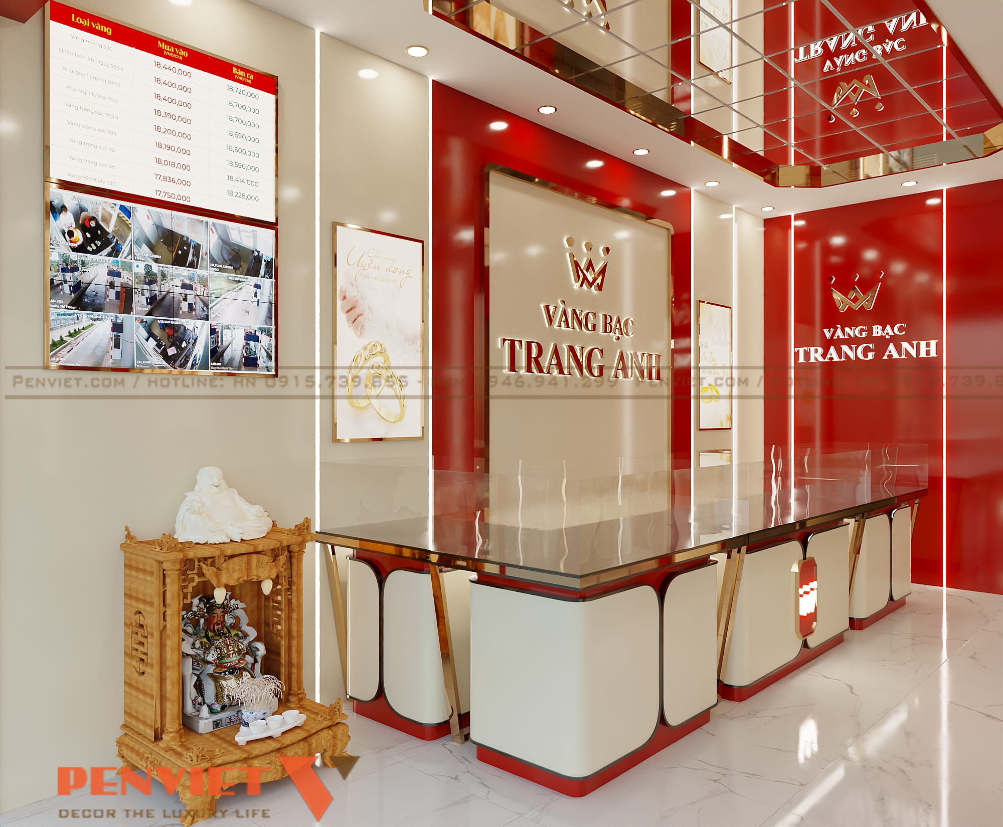 Không gian tiệm vàng nhỏ vẫn có thể tạo ấn tượng mạnh nếu được thiết kế đúng cách. Dự án Tiệm vàng Trang Anh tại Hà Nội là ví dụ rõ ràng về cách cải tạo hiệu quả trên diện tích 45m2. Bố cục thông minh, màu sắc nổi bật và ánh sáng chuẩn chỉnh giúp nâng tầm giá trị sản phẩm.