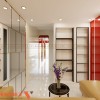 Mặt bằng 45m2 được tổ chức lại theo hướng mở, giảm cảm giác chật hẹp. Lối đi trung tâm rộng rãi giúp khách di chuyển thuận tiện. Các khu trưng bày bố trí hai bên, tạo dòng di chuyển rõ ràng. Không gian được chia tách nhưng vẫn giữ sự liên kết.