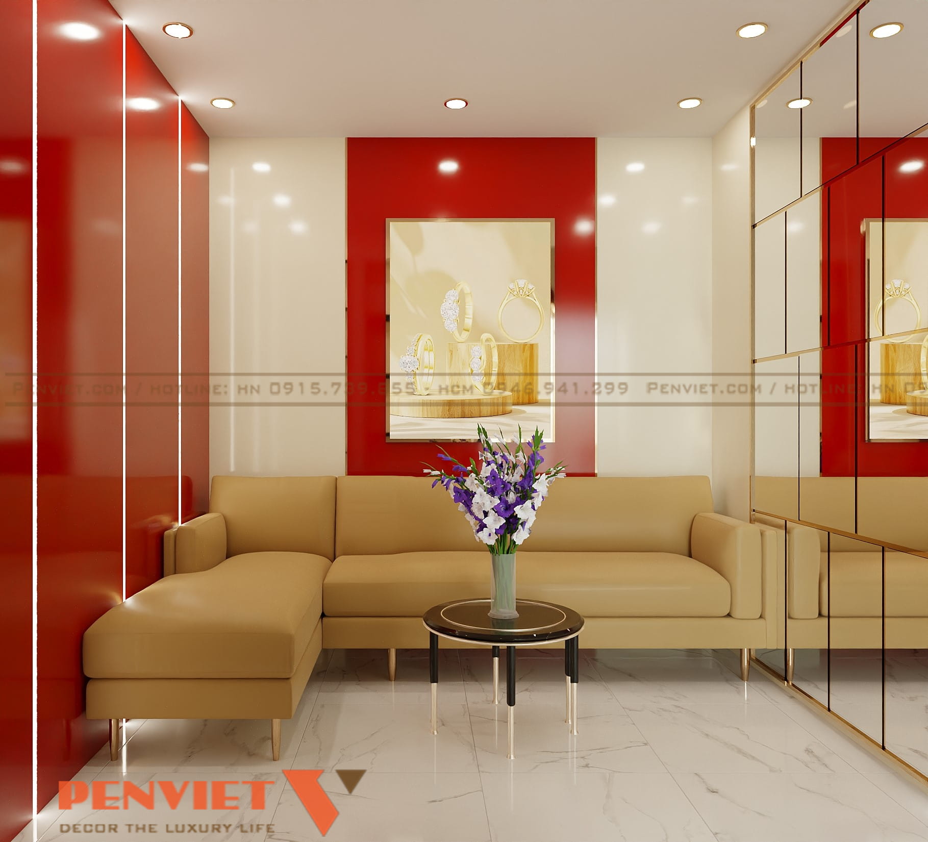 Ánh sáng vàng nhẹ được sử dụng tại khu trưng bày. Điều này giúp tôn lên màu sắc của vàng và đá quý. Trải nghiệm thị giác được nâng cao rõ rệt. Khách hàng dễ đưa ra quyết định mua hơn.