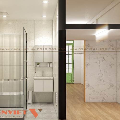 Hệ tủ treo tường để trưng bày thêm sản phẩm, tạo cảm giác không gian như showroom. Kết hợp phía sau là phòng riêng dành cho tư vấn riêng, các giao dịch cao cấp, vừa bảo mật, sang trọng. Kho và khu phụ trợ được bố trí khéo léo ở phía sau, sau lớp cửa kín, không gây ảnh hưởng đến thẩm mỹ.