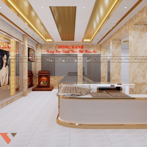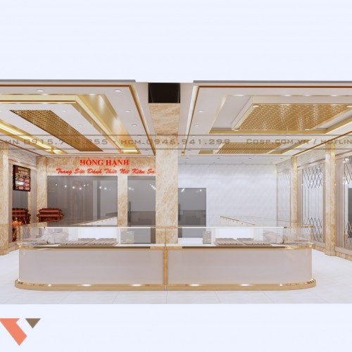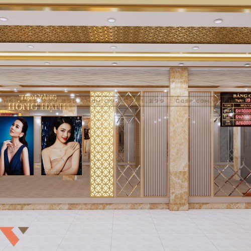 Với mong muốn nâng tầm thương hiệu,chủ tiệm vàng Hồng Hạnh mong muốn cải tạo, thiết kế lại không gian nội thất theo phong cách hiện đại kết hợp hoàng gia. Trong đó, vách trang trí là điểm nhấn quan trọng, tạo nên sự khác biệt, thể hiện đẳng cấp và giá trị thương hiệu ngay từ cái nhìn đầu tiên.