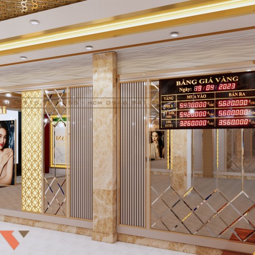 Vách trang trí trong không gian tiệm vàng không chỉ đơn thuần để che chắn hay phân chia khu vực, mà còn là nơi khẳng định phong cách, thu hút ánh nhìn và tạo điểm nhấn thị giác. Thiết kế vách tại tiệm vàng Hồng Hạnh là một minh chứng rõ nét cho điều đó.