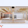 Dù không có tường ngăn thô cứng, hệ vách giúp phân định không gian rõ ràng giữa quầy trưng bày và khu vực quảng bá thương hiệu.