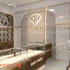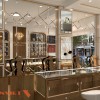 Kính không chỉ làm tăng diện tích thị giác mà còn tạo độ bóng, sang, là thủ pháp thiết kế thường thấy trong các boutique trang sức cao cấp quốc tế.