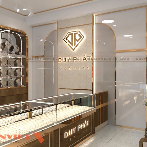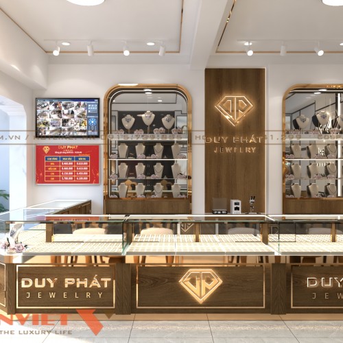 Thị trường trang sức ngày càng phát triển, tiệm vàng vừa là nơi mua bán sản phẩm giá trị vừa là không gian thể hiện đẳng cấp thương hiệu, tạo niềm tin khách hàng. Với tầm nhìn đầu tư chỉn chu, thiết kế tiệm vàng Duy Phát tại Long An đã chinh phục khách hàng ngay từ ánh nhìn đầu tiên bằng phong cách thiết kế nội thất độc đáo.