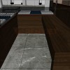 Giải quyết hạn chế về mặt bằng là ưu tiên hàng đầu cần được các kiến trúc sư Penviet tìm ra phương án. Do đó, bên cạnh việc bố trí quầy kệ một cách khoa học, chúng tôi cũng sử dụng kệ sát tường bằng gỗ Melamine với kính thủy bi lá hẹ mài vát cạnh nẹp chỉ gỗ trang trí kết hợp nẹp Alu vàng gương để tạo hiệu ứng mở rộng không gian.