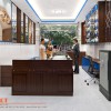 Bên cạnh đó, kiến trúc sư còn khéo léo setup vách ngăn trang trí ở cuối tiệm bằng thạch cao cùng lam nhựa giả gỗ, nẹp inox dẹp dán kết hợp với bộ chữ tên thương hiệu bằng inox dẹp tạo sự chú ý cũng như giúp người mua dễ dàng ghi nhớ đến tiệm vàng khi có nhu cầu.